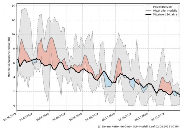 Unsere aktuellen Langfristprognosen für Lufttemperatur, Sonnenscheindauer und Niederschlagshöhe.