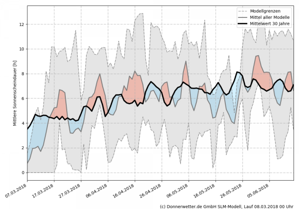 Unsere aktuellen Langfristprognosen für Lufttemperatur, Sonnenscheindauer und Niederschlagshöhe