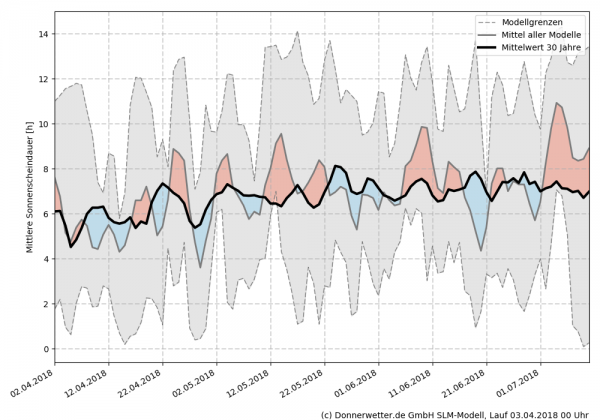 Unsere aktuellen Langfristprognosen für Lufttemperatur, Sonnenscheindauer und Niederschlagshöhe.