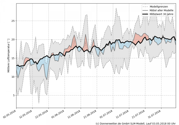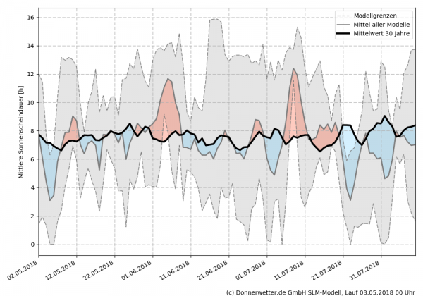 Unsere aktuellen Langfristprognosen für Lufttemperatur, Sonnenscheindauer und Niederschlagshöhe.