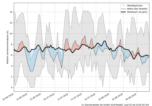 Unsere aktuellen Langfristprognosen für Lufttemperatur, Sonnenscheindauer und Niederschlagshöhe.