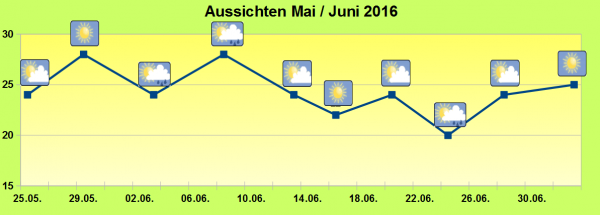 Die Wetterlage "Tief Mitteleuropa" kann sich erfahrungsgemäß hartnäckig halten, wahrscheinlich wird es aber zum Ende des Monats Mai wieder deutlich wärmer und freundlicher.