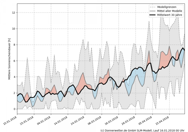 Unsere aktuellen Langfristprognosen für Lufttemperatur, Sonnenscheindauer und Niederschlagshöhe.