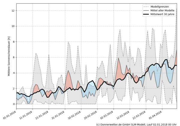Unsere aktuellen Langfristprognosen für Lufttemperatur, Sonnenscheindauer und Niederschlagshöhe.