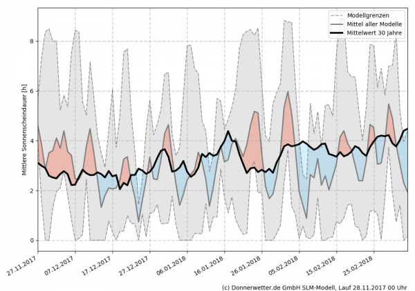 Zu kalt und deutlich zu nass - die aktuellen Modellläufe bescheinigen dem Süden einen sehr wechselhaften Jahresausklang. Zumindest auf die Sonne ist hin und wieder Verlass: Vor allem bis Mitte Dezember kommt sie immer wieder zu Zug.
