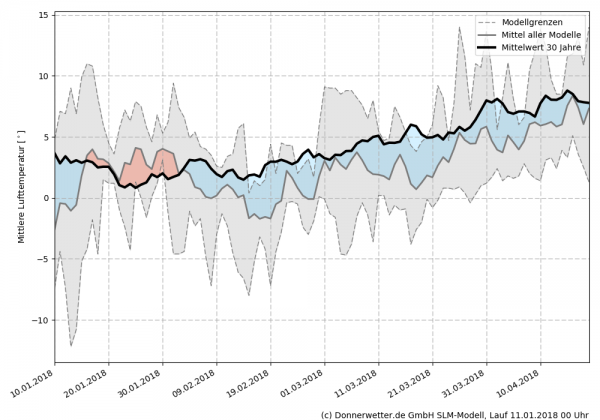 Unser aktuelles Temperaturmodell berechnet für den Norden in den nächsten Wochen und Monaten, abgesehen von einer kurzen milden Wetterphase zwischen Mitte Januar und Mitte Februar, überwiegend zu kalte Tage. Die zu erwartenden Niederschlagsmengen liegen dabei häufig, wenn in vielen Fällen auch nur leicht, über dem langjährigen Mittel. Überdurchschnittlich viele Sonnenstunden bringt vor allem noch der Rest des aktuellen Monats.