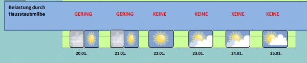 Die trocken-kalte Luft hält das Milbenrisiko vor allem in der neuen Woche sehr gering.