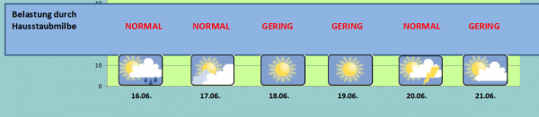 Pollenallergiker sind im Moment nicht zu beneiden, in Sachen Hausstaub sieht es da ganz anders aus: Das meist trockene Hochdruckwetter in der neuen Woche macht es den Milben nicht leicht. Sie fühlen sich bei einer relativen Luftfeuchtigkeit von 65-80 Prozent besonders wohl.