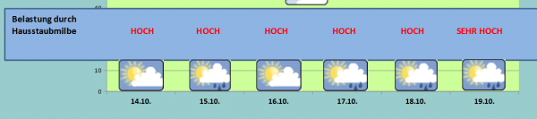Das feuchtwarme Wetter am Wochenende erhöht das Hausstaubrisiko; vor allem in der nächsten Woche könnten Allergiker mit dem hohen Taupunkt die typischen Allergiesymptome zu spüren kommen.