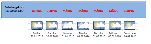 Die milde und feuchtere Luft sorgt über den Monatswechsel hinweg wieder für leichte Belastungen beim Hausstaub.