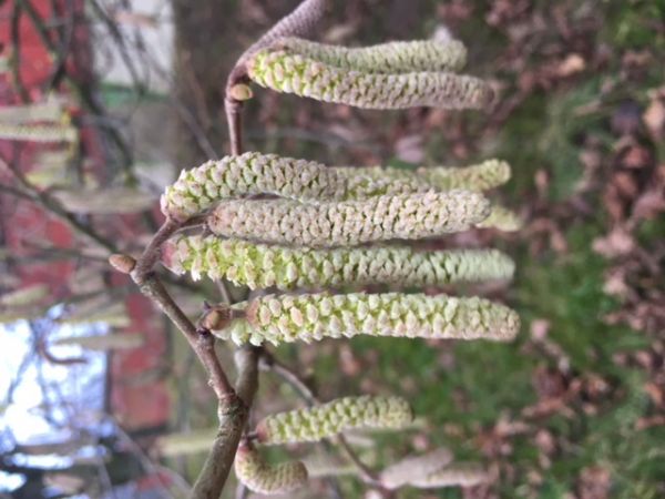 So, jetzt geht es los. Die Haselsträucher blühen auf weiter Front. Kein Wunder, bei 10-14 Grad C zum Jahreswechsel. Es ist bei trockenem Wetter mit leichter bis mäßiger Belastung durch Hasel- und Erlenpollen zu rechnen. Unten die Aufnahme der geöffneten und stäubenden Haselkätzchen von gestern.