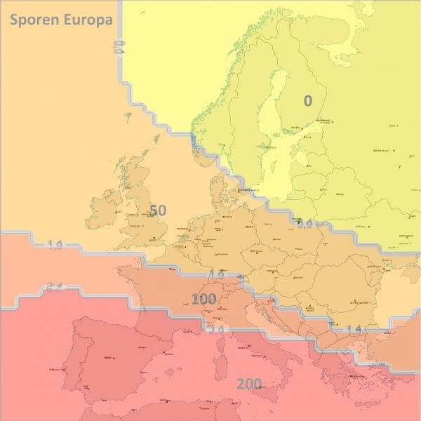 Aktuelle Sporenbelastung über Europa. Dargstellt sind die Werte in Sporen/m³.