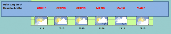 Bei richtigem Lüften liegt die Luftfeuchtigkeit in den Innenräumen bei Werten unter 50 %.  Erst im Laufe der nächsten Woche könnten durch steigende Außenfeuchtigkeit wieder mehr Allergieprobleme auftreten.
