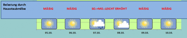 Am Wochenende sowie in der neuen Woche liegen die Hausstaubbelastungen in den Innenräumen auf mäßigem bis leicht erhöhten Niveau.