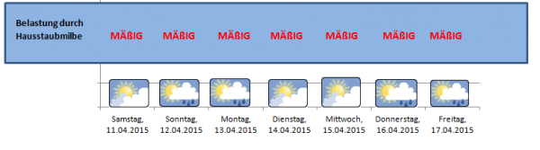 Allergikern bleibt kaum Zeit zum Durchatmen, denn auch in den kommenden Tagen bleibt es bei überwiegend feuchtem Aprilwetter, welches - sofern Sie Ihre Räume nicht richtig durchlüften - für mäßige Belastungen durch Hausstaubmilben sorgen kann.