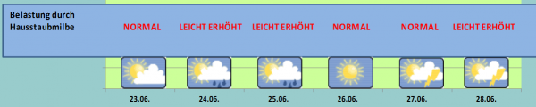 Aufgrund des meist trockenen Wetters bleibt das Milbenaufkommen zwar auch in den kommenden Tagen überschaubar, dennoch sollten Hausstauballergiker weiterhin auf Luftfilter, Lufttrockner und häufiges Lüften zu setzen.