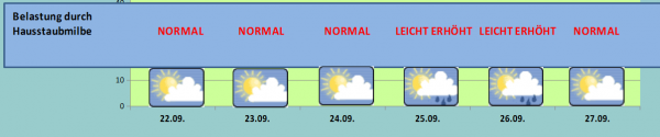 Das weitgehend trockene Wetter am Wochenende und in der neuen Woche senkt das Hausstaubpotential in unseren Innenräumen. Auch in der neuen Woche sorgen die seltenen Schauer dafür, dass wir uns nicht vor einem massenhaften Milbenansturm fürchten müssen.