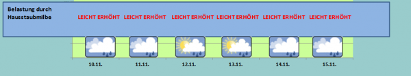 Das feuchtkühle Novemberwetter führt in den nächsten Tagen zu hohen Belastungen durch Hausstaubmilben. Bis voraussichtlich Ende der Woche bleiben die Belastungen hoch.
