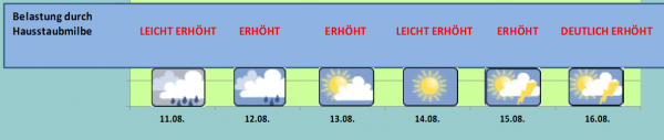 In Kombination mit der hohen Luftfeuchtigkeit ergibt dies beinahe paradiesische Bedingungen für die Milbe. Dementsprechend hoch ist die Belastung in den kommenden Tagen.