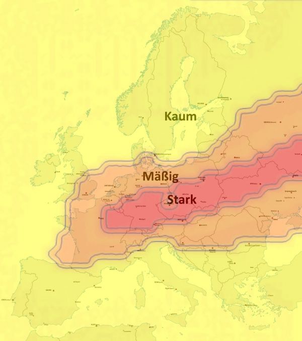 Unsere Europakarte zeigt den durchschnittlich zu erwartenden Beifuß-Pollenflug bis zu 15.07.2016: