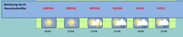 Die zunehmende Feuchtigkeit wirkt sich auf das Milbentreiben in unseren Betten für uns negativ aus. Allergiker müssen in der neuen Woche mit hohen Hausstaubbelastungen rechnen.