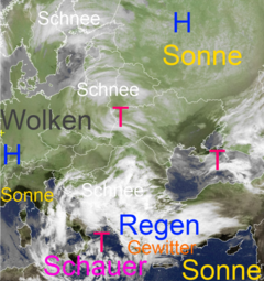 Schwache Front mit etwas Schnee auf dem Weg nach Westdeutschland