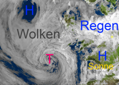Wolkenspirale über dem Atlantik