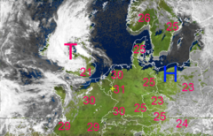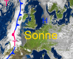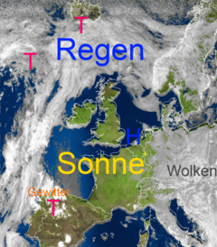 Hoch über der südlichen Nordsee vertreibt die Wolken