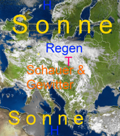 Regen und Schauerzellen über größeren Gebieten von Europa