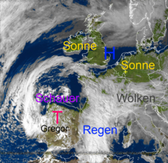 ![]() | | Satellitenbild 23.03.2017 Tief Gregor sorgt in Teilen Spaniens für einen Wintereinbruch |