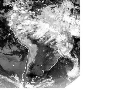 Auf dem Satellitenbild von Donnerstag früh sind auf der Nordhälfte von Südamerika Schauer- und Gewitterwolken gut zu erkennen. Weiter nach Süden, vor allem über Argentinien und Chile, ist der Himmel dagegen nahezu wolkenfrei. Gut zu erkennen ist dabei der Verlauf der Anden, die sich mit ihren kühleren Temperaturen (im Infrarotbereich heller dargestellt) deutlich vom wärmeren Flachland abheben. (Bildquelle: NERC Satellite Receiving Station, Dundee University, Scotland, http://www.sat.dundee.ac.uk/)