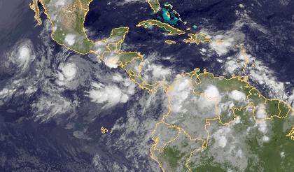 Im Pazifik befinden sich die tropischen Stürme 'Blas' und 'Celia'. Über dem Norden Südamerikas haben sich kräftige Schauer und Gewitter entwickelt.