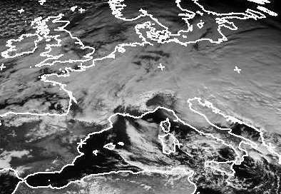 Über Italien liegt das Zentrum von Tief 'Verena'. Über dem Mittelmeer bringt es jedoch nur einige Wolkenfelder. Dagegen ist Mitteleuropa fast vollständig von einer Wolkendecke überzogen. Bei feuchter Luft ohne starken Wind gibt es über der kalten Landmasse kaum Möglichkeiten zur Wolkenauflösung. Zudem bestimmen nicht nur Ausläufer des Tiefs im Süden das Wetter, sondern auch Ausläufer von Tiefs über dem Nordatlantik und Skandinavien. (Bildquelle: NERC Satellite Receiving Station, Dundee University, Scotland, http://www.sat.dundee.ac.uk/)