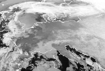 Das Wolkenband, das sich westlich von Schottland über Südskandinavien bis nach Russland erstreckt, bildet die Warmfront eines Tiefs mit Zentrum über der Nordsee. Durch diese Front wird mildere Luft in den Norden geführt. Von Russland über Deutschland bis nach Frankreich ist es fast wolkenlos. Dies lässt sich darauf zurückführen, dass Hoch 'Ayaan' sich über dieses Gebiet erstreckt und sich in seiner kalten und trockenen Luft nur schwer Wolken bilden können.