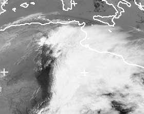 Dichte Wolken halten sich derzeit vor allem über Tunesien und Libyen. Sie gehören zu einem Tief über Algerien und bringen der gesamten Region heute teils kräftige Schauer oder Gewitter. (Bildquelle: NERC Satellite Receiving Station, Dundee University, Scotland, http://www.sat.dundee.ac.uk/)