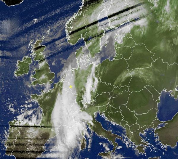 Das Satellitenfoto von heute Nachmittag zeigt ein breites Wolkenband von Benelux, über Westdeutschland, die Osthälfte Frankreich bis ins westliche Mittelmeer. Dabei entwickeln sich zur Zeit besonders im Stau der Südalpen, aber auch über dem Südwesten von Deutschland teils langanhaltende und ergiebige Niederschläge.