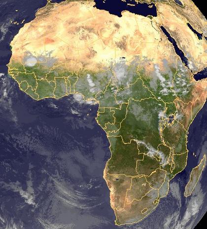 Auf dem heutigen Satellitenfoto von Afrika sind, vor allem in einem breiten Streifen vom Äquator nördlich bis zum 20. Grad nördlicher Breite, dichte Quellwolken zu erkennen, die hier gebietsweise für kräftige Schauer oder Gewitter sorgen können. Mit dem Strahlunsmaxima der Sonne zwischen den Wendekreisen wandert in zeitlicher Verzögerung auch die Intensität der Wolkenentstehung und der einhergehenden Niederschläge und Gewitter.