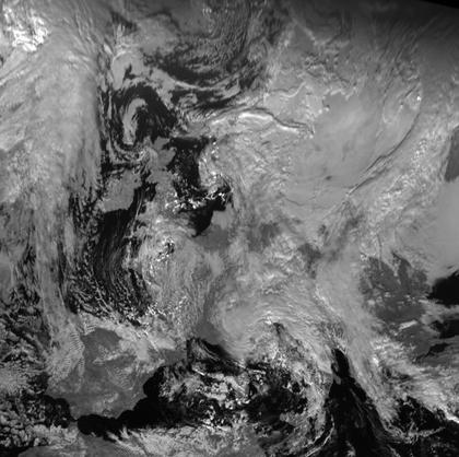 Auf dem Satellitenbild vom Sonntagmittag erkennt man im Bereich des Ärmelkanals noch den Wolkenwirbel des sich auflösenden Tiefs 'Dettmar'. Über Italien hat sich jedoch bereits das neue Tief 'Fritz' gebildet. Auffällig ist die riesige geschlossene Wolkendecke von Norddeutschland bis zum Schwarzen Meer und nach Norden bis nach Nordskandinavien. Tiefdruckgebiete spielen hier nur zum Teil eine Rolle. Vor allem über Skandinavien und dem Ostseeraum liegt ein Hoch. Dennoch halten sich dichte Wolken oder teils auch Nebel oder Hochnebel.