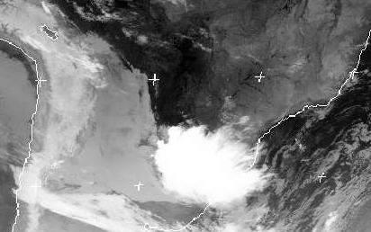 Eine große Schauerzelle ist auf dem Satellitenbild von Mittwoch früh gut zu erkennen. Sie erstreckt sich von Südbrasilien über Paraguay bis in den Norden Argentiniens. Im Laufe des Tages wird sie sich noch etwas verstärken und für teils kräftige Schauer und Gewitter sorgen. (Bildquelle: NERC Satellite Receiving Station, Dundee University, Scotland, http://www.sat.dundee.ac.uk/)
