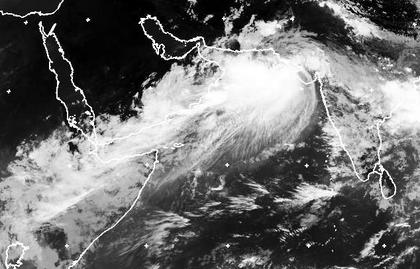 Ein langgestrecktes Wolkenband zieht sich von Äthiopen über Jemen bis nach Pakistan. Da die Temperaturen in diesen Gebieten teilweise sehr hoch sind, können sich teils sehr schwere Gewitter bilden. Auch in Indien bringen viele Wolken Monsunregen. Auf der nördlichen Seite der Arabischen Halbinsel ist es dagegen wolkenlos und trocken. (Bildquelle: NERC Satellite Receiving Station, Dundee University, Scotland, http://www.sat.dundee.ac.uk/)