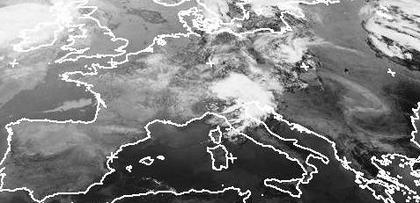 Auf dem Satellitenbild vom Freitag Mittag ist das Tief 'Jamie' über Polen an einer Wolkenspirale zu erkennen, es sorgt heute noch für Schauer und Gewitter hier und in den Baltikländern. Ein weiteres kleines Tief mit zum Teil unwetterartigen Niederschlägen liegt über Norditalien und Kroatien. In West- und Südosteuropa gibt es unter Hochdruckeinfluss nur wenige Wolken. (Bildquelle: NERC Satellite Receiving Station, Dundee University, Scotland, http://www.sat.dundee.ac.uk/)