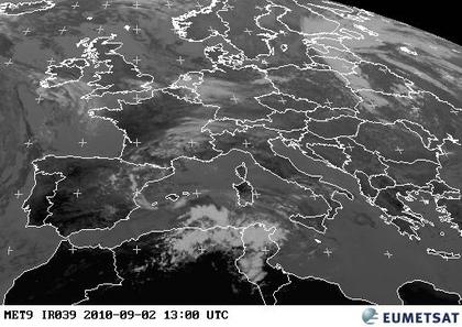 Das Satelittenbild zeigt vor allem über Osteuropa verbreitet dichte Wolken, hier herrscht zum größten teils unbeständiges Wetter mit häufigen Schauern. Sonst sind bei wechselnder Bewölkung auch in Teilen Mitteleuropas und vereinzelt auch im Mittelmeerraum einzelne Schauer oder Gewitter möglich. Meist herrscht allerdings eher trockenes und ruhiges Wetter.