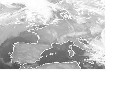 Während über Großbritannien und im Osten noch Tiefausläufer für Wolken und Regen sorgen, bringt Hoch 'David' über Frankreich von Spanien bis Deutschland teils freundliches, teils aber auch neblig-trübes Wetter. Die Wolken über Großbritannien werden allerdings gegen Abend den Norden Deutschlands erreichen. (Bildquelle: NERC Satellite Receiving Station, Dundee University, Scotland, http://www.sat.dundee.ac.uk/)