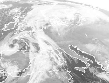 Das Hoch 'Hella' bestimmt das Wetter in Ost- und Mitteleuropa. Es sorgt in Deutschland für eine kräftige Südströmung, mit der trockene und milde Luft herangeführt wird, in der sich kaum Wolken bilden. Jedoch zieht in der Höhe teils recht dichte Cirrusbewölkung über Teile des Landes hinweg. Sie zieht von Südwesten auf. Über der Biskaya liegt das Tief 'Zolan', das dort die Wolken steuert.