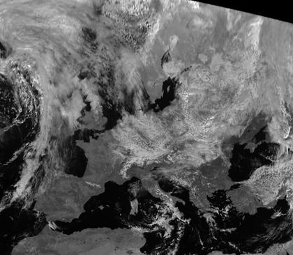 Auf dem Satellitenbild von Europa zeigen sich zwei Gebiete mit sehr unterschiedlichem Wetter. Während es im Bereich von Hoch 'Isidor' über Spanien und großen Teilen Frankreichs verbreitet sonnig ist, herrschen über Deutschland die Wolken von Tief 'Dagmar' vor.