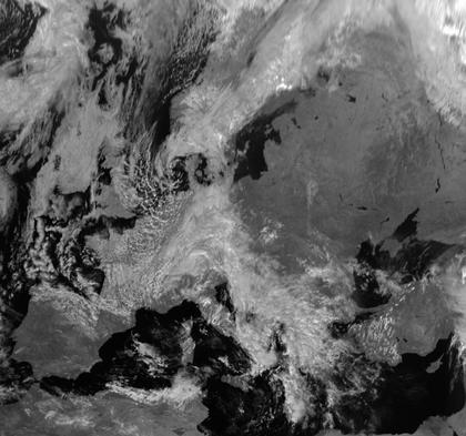 Tief 'Kathrein' sorgt für dichte Wolken in West- und Mitteleuropa. Hoch 'Ludger' mit Zentrum über der nördlichen Ukraine sorgt weiter für wolkenarmes Wetter in Osteuropa.