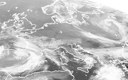 Ein Keil von Hoch 'Silvia' über der Nordsee erstreckt sich nach Deutschland und verhindert dort meist erfolgreich das entstehen jeglicher Wolken. Mehr Wolken findet man erst in Südwesteuropa und im Mittelmeerraum, wo Tiefdruckeinfluss für Schauer und Gewitter sorgt. Ein weiteres Tief findet man abgeschwächt über Osteuropa. Es kann dabei aber von der Ostsee her noch ein paar lockere Wolken in Deutschlands Nordosten lenken. (Bildquelle: NERC Satellite Receiving Station, Dundee University, Scotland, http://www.sat.dundee.ac.uk/)