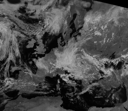 In Westeuropa und zunehmend auch in Mitteleuropa macht sich der Einfluss von Hoch 'Urs' bemerkbar. Die dichten Wolken über dem östliche Mitteleuropa stammen von Tief 'Bergthora'.
