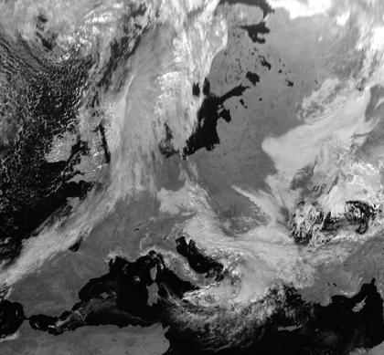 Hoch 'Marcel' liegt mit seinem Zentrum über Weissrussland und sorgt für viel Sonne in Osteuropa. Im Bereich der großen Flüsse Russlands hat sich zäher Hochnebel gebildet, der im Satellitenbild als einheitliche Struktur erkennbar ist. Auch im Südwesten Europas dominiert Hochdruckeinfluss.