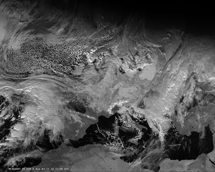 Auf dem heutigen Satellitenfoto sind Tiefdrucksysteme besonders im Norden des Kontinents zu erkennen, hier bleibt es überwiegend stark bewölkt und es fällt gelegentlich Schnee. Über Mitteleuropa sorgt ein schwaches Hoch für meist trockenes und teils freundliches Wetter. Überwiegend sonnig und trocken ist es zur Zeit im Mittelmeerraum. Einzig zwischen Adria und Ägäis sorgt ein Tiefdruckgebiet für teils kräftigen Regen.